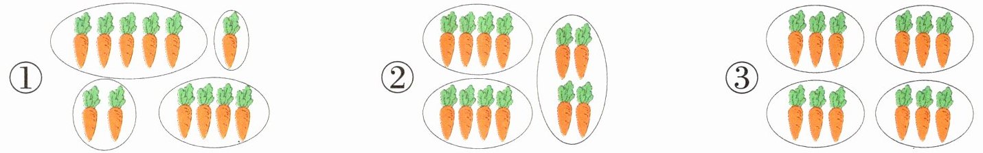 1. [教材改编]丰收啦!把12根萝卜平均分给4个小组,哪种分法是公平的?(