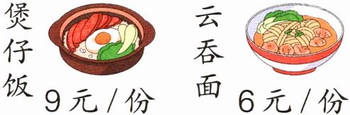 3.妈妈和5位同事想在外卖平台上每人订一份云吞面,一共需要多少钱?如果用这些钱订煲仔饭,可以订几份?
