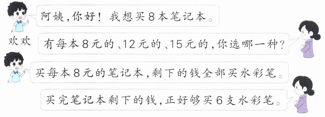 3.[新情境·生活运用]欢欢带了100元去买文具,每支水彩笔多少钱?