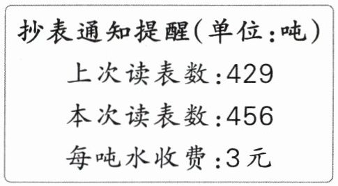)吨(用水量= 本次读表数-上次读表数),需付水费(81