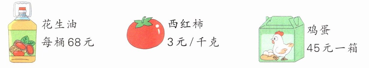 2. 学校统一购置材料,让学生在烹饪课上学习西红柿炒鸡蛋这道菜。超市里的食品价格如下: