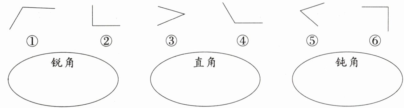 锐角:③⑤ 直角:②⑥ 钝角:①④