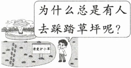3. 你能用学过的知识回答小朋友的问题吗?你想对踩踏草坪的人说些什么?(5分)