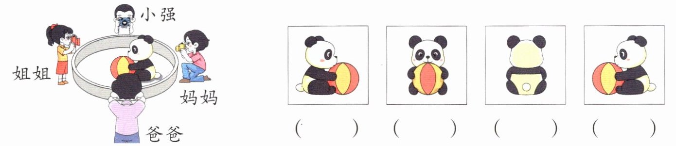 (1)四人站在不同的位置给大熊猫拍照,下面几张照片分别是谁拍的?