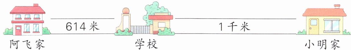 5. 一天,阿飞从家去学校,走了150米后发现忘记带数学书了,于是回家拿书再去学校,小明直接从家去学校。阿飞和小明谁走的路多?多多少米?