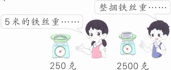 )小丽:先称5米铁丝多重,再称整捆铁丝多重,看整捆铁丝有多少个5米。(