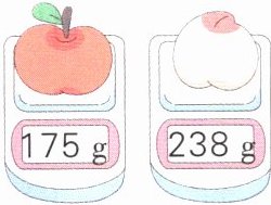小明:称一称。桃子比苹果大约重(