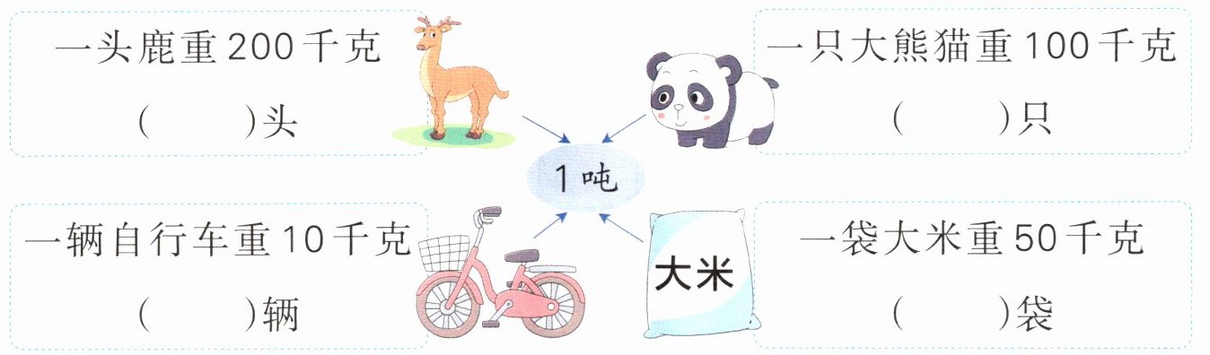 3. [教材改编]在()里填上适当的数,使每种东西的总重恰好是1吨。