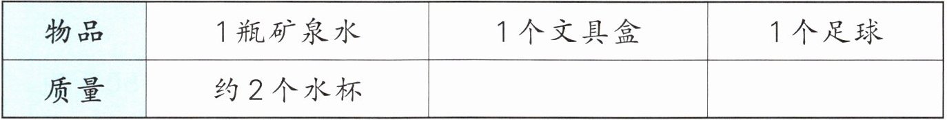 (3)知道水杯的质量后,用水杯表示下面这些物品的质量。