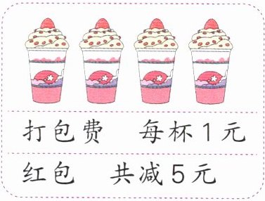 4. 李叔叔想买4杯同款奶茶,他对比了实体店和外卖(如图)的价格,都是每杯11元。想一想,他应该选择怎么买?说出你的2条理由。