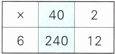 (2)游乐园里电动火车的票价是每人6元。42人乘坐电动火车需要多少钱?表中涂色部分表示:(