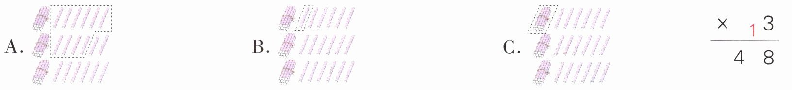 (1)(名校期末真题)下面小棒图中,虚线框住的小棒相当于右边竖式中的进位“1”的是(