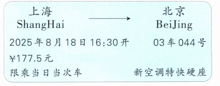 4. 我国火车车次一般用字母加数字表示。开头字母:T—特快列车,K—快速列车,D—动车组列车等。字母后面的数字编号:进京方向的车次为双数;离京方向的车次为单数。如图车票车次可能为(