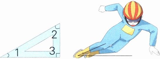 图中滑冰运动员的腿与冰面形成的夹角与三角尺上的(