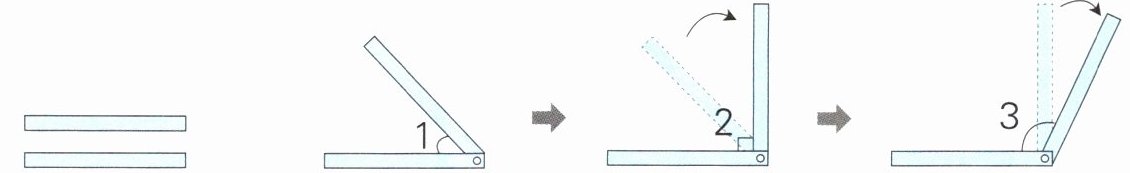 1. 聪聪把两张硬纸条钉在一起,做成了一个活动角,旋转其中一条边,变化角的大小。