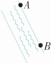 有一条河流,笔直的河岸经过点A和点B,在与河岸AB形成直角的那条边上,“宝贝”M和点A的距离与河岸AB相等,就在河岸AB的对岸。