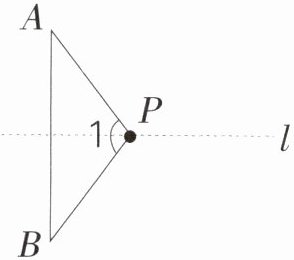 4. 一根皮筋围成如图三角形,AB边固定不动,点P沿着虚线l慢慢向右平移。∠1的变化过程是(