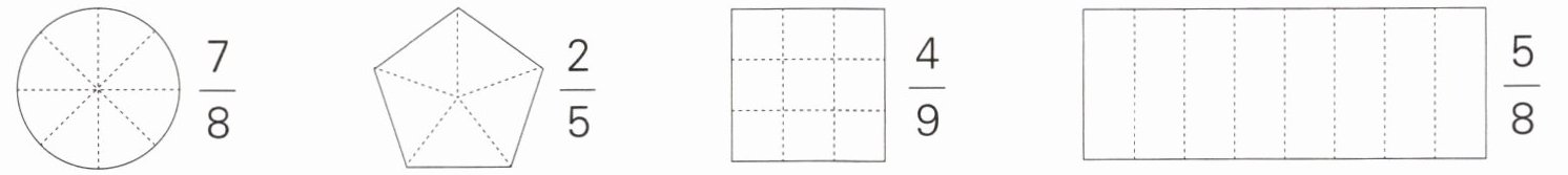 $\frac{7}{8}$ $\frac{2}{5}$ $\frac{4}{9}$ $\frac{5}{8}$