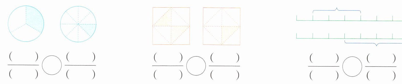 $\frac{1}{3}>\frac{1}{8}$ $\frac{2}{8}>\frac{1}{8}$ $\frac{3}{7}<\frac{4}{7}$