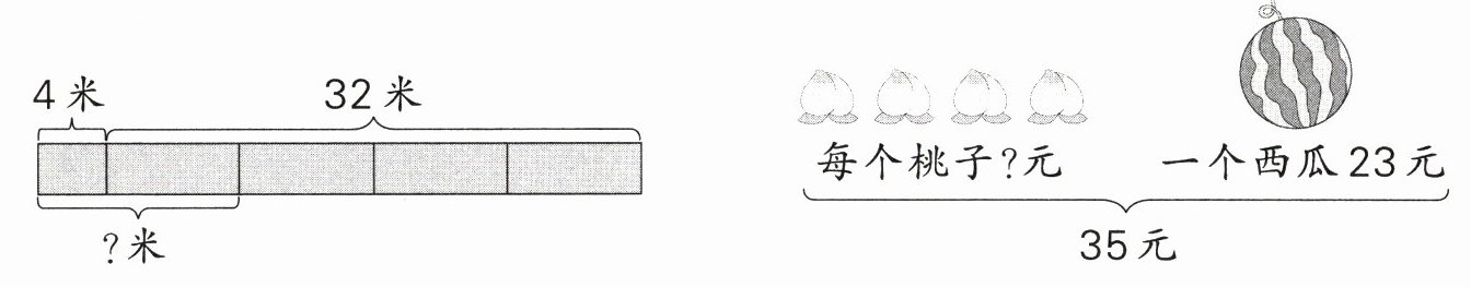 32÷4+4=12(米)(35-23)÷4=3(元)