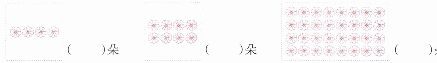4. [教材改编]分别圈出它们的$\frac{3}{4}$,各有多少朵花?
