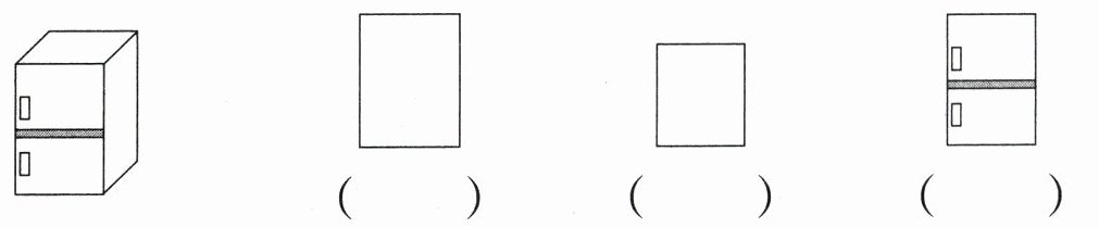 2. 观察下面的物体,从前面看到的画“√”,从上面看到的画“○”,从侧面看到的画“△”。