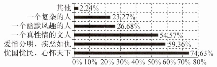 (1)①在大多数人的印象中,鲁迅先生是一个真性情的文人,是一个爱憎分明、疾恶如仇、忧国忧民、心怀天下的人;②大多数人认为鲁迅先生的改造国民思想对今天仍然有意义。(每条2分)(2)示例:你辛辛苦苦查找了这么多资料,又有自己独到的见解,你自己来讲不是表达得更清楚吗?(2分)