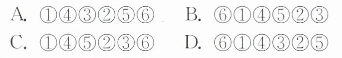 D(⑥句提出观点,引起下文,是首句;①句举例过渡,是第二句;结合关联词及前文的描述顺序辨析,④③在前,②⑤在后。故正确的排序为:⑥①④③②⑤)