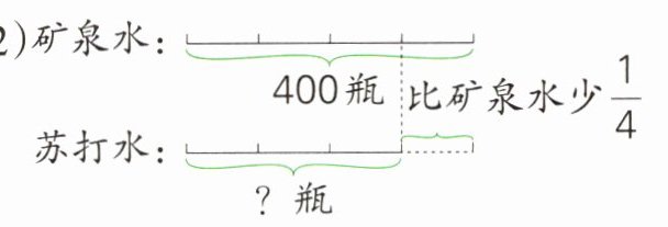 (2)矿泉水:——— 400瓶 比矿泉水少$\frac{1}{4}$ 苏打水:——— ?瓶