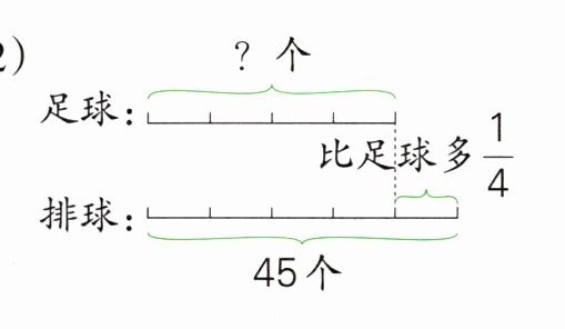 (2) ?个 足球: 排球:比足球多$\frac{1}{4}$ 45个