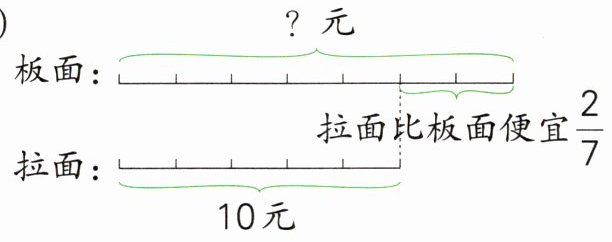 (1) ?元 板面: 拉面比板面便宜$\frac{2}{7}$ 拉面:10元