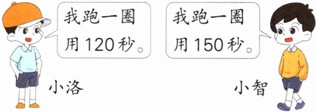 $1÷ \left(\frac{1}{120}-\frac{1}{150}\right)=600$(秒) 600秒=10分 答:10分钟后小洛比小智多跑一整圈。