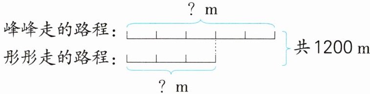 4.(答案不唯一)彤彤的速度是峰峰的$\frac{3}{5}$ 解:设相遇时峰峰走了$x$m。 $x+\frac{3}{5}x=1200$ $x=750$ $750×\frac{3}{5}=450$(m) 答:相遇时峰峰走了750m,彤彤走了450m。