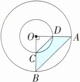 3.14×(25×2)=157(cm²) 答:圆环的面积是157 cm²。 解析:由图可知,三角形OAB和三角形ODC均是等腰直角三角形,涂色部分的面积等于这两个等腰直角三角形的面积差,而三角形ODC的直角边OD(OC)就是圆环内圆的半径,三角形OAB的直角边OA(OB)就是圆环外圆的半径。又根据三角形的面积计算公式可知,涂色部分的面积等于两个圆的半径平方的差的一半,据此求出圆环的面积即可。
