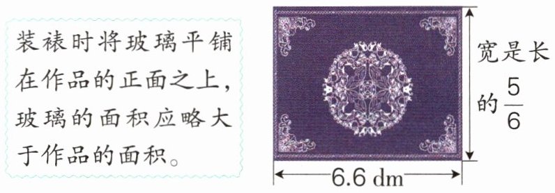 不合适。因为玻璃的面积应略大于这幅作品的面积,而这幅作品的宽是$6.6×\frac{5}{6}=5.5$(dm),面积是$6.6×5.5=36.3$($dm^2$),$35<36.3$,即玻璃的面积小于作品的面积,不符合要求,所以不合适。