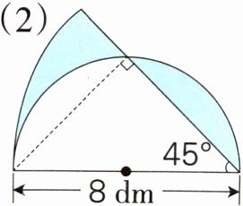 (2)$3.14×8^{2}×\frac{45}{360}-8×(8÷2)×\frac{1}{2}=9.12(dm^{2})$