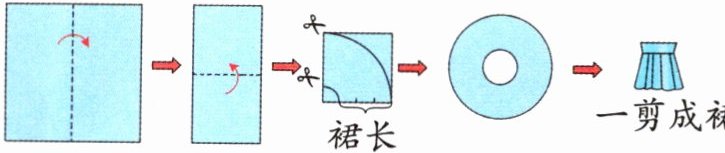 解析:由图可知,裙长是剪出来的大圆的半径减去小圆的半径,即大圆半径的1 - $\frac{1}{4}$ = $\frac{3}{4}$。而大圆的半径等于小正方形的边长,等于大正方形边长的一半,为1.6÷2=0.8(m),所以裙长为0.8×$\frac{3}{4}$=0.6(m)。