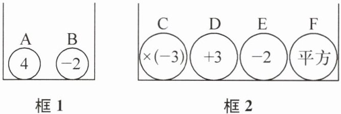 (2)①若安安从框1中摸出了球B,从框2中摸出球的顺序为F→E→______→______,计算结果为-3,请你通过计算判断安安从框2中摸出球的顺序.