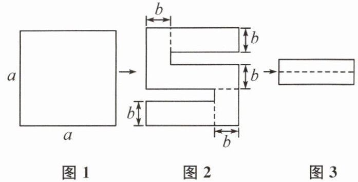 2. 如图1,将一张边长为$a$的正方形纸片剪去两个小长方形,得到一个“”的图案,如图2所示.再将剪下的两个小长方形拼成一个新的长方形(图3),则新长方形的周长可表示为(