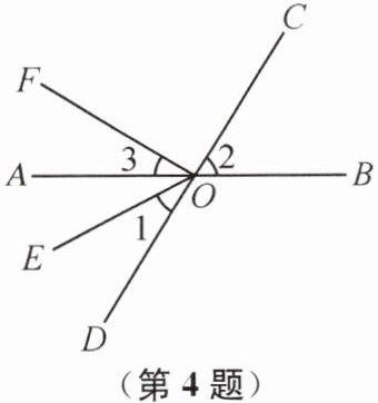 4. 如图,直线AB,CD相交于点O,OE平分∠AOD,OF⊥OC,∠1与∠3的度数之比为3:4,则∠2=