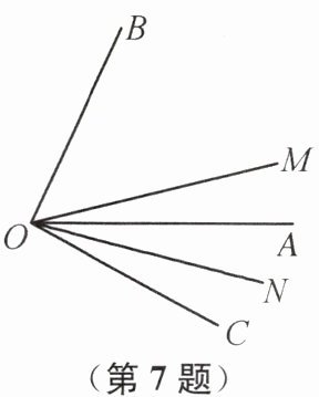 7. 如图,已知OM,OA,ON是∠BOC内的三条射线,ON平分∠AOC,OM平分∠BOC,且∠AOB+∠MON= 120°,则∠MON= ______.