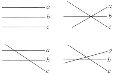 由上图可知,平面内三条直线的交点个数可以是0或1或2或3.