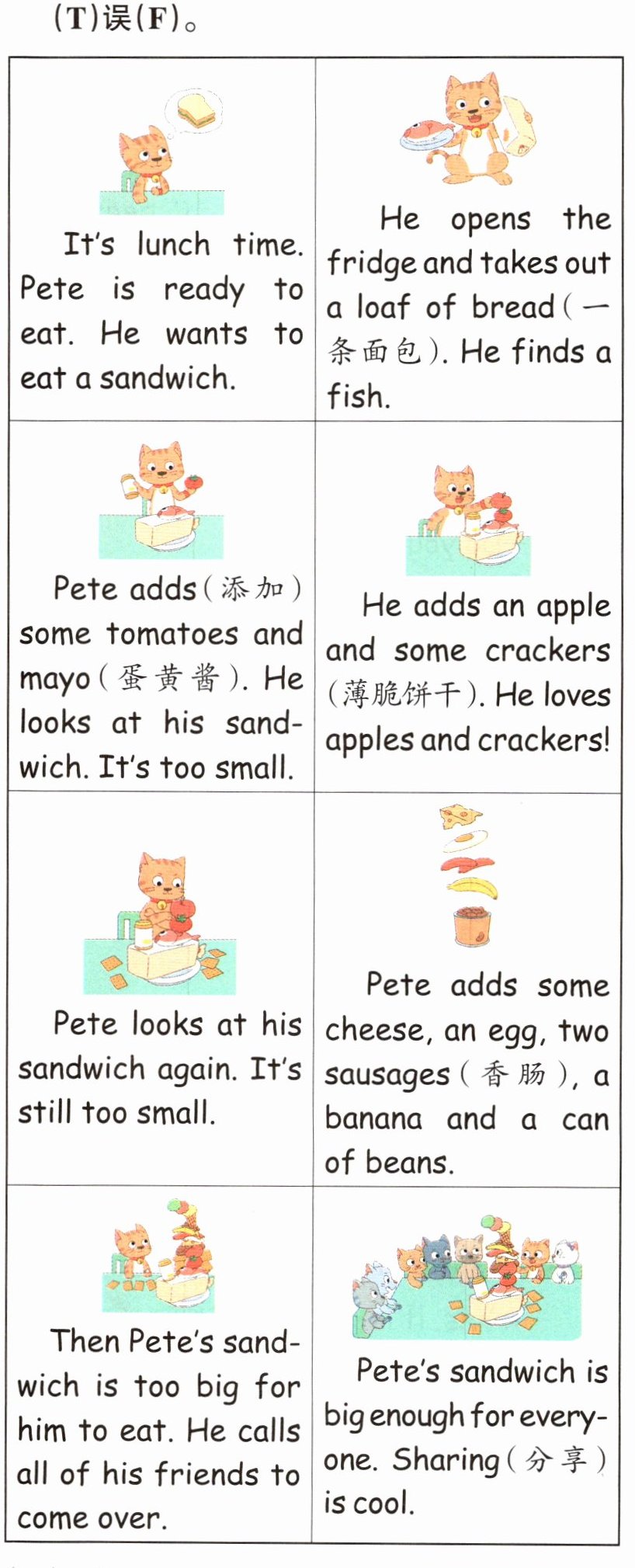 九、[新趋势·多模态语篇]阅读绘本,判断正(T)误(F)。