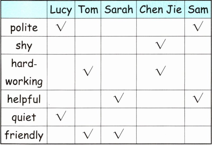 1.helpful 2.kind 3.clever 4.hard-working 5.shy