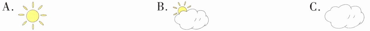 3. 小科观察到天空中的云比较多,有时可以看见太阳。他用下列三幅图表示此时的云量,最合适的是(