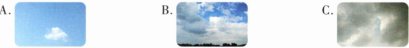 2. 小明在日记中写道:“蔚蓝的天空中偶尔飘过一朵棉花状的云……”由此判断当时的天气是(