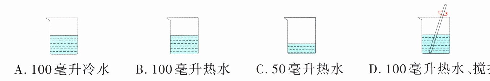 。2. 如果要探究溶解快慢是否与水量有关,可以选择