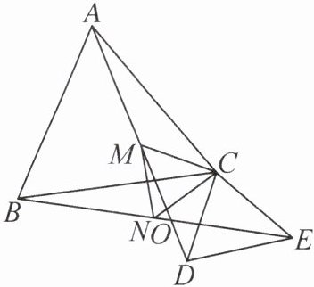 11. 如图,△ABC,△CDE 都是等边三角形,AD,BE 相交于点 O,M,N 分别是线段 AD,BE 的中点.