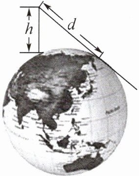 解:由R=6400km,h=5m=0.005km,得d≈√(2×0.005×6400)=8(km).答:此时观测者能看到的最远距离d约是8km.