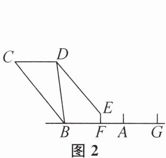 4. 图1是一辆卸货车实物图,折线A-B-C是支架,BD为可伸缩的液压支撑杆,测得BC= $\sqrt{10}$,CD= $\sqrt{2}$,DE= 3,∠ABC= ∠CDE= 135°,∠EFG= 90°.图2是卸货车不工作时的侧面示意图,此时AB与FG在同一直线上,CD//AB,且∠DEF= 135°,则BF= ______.